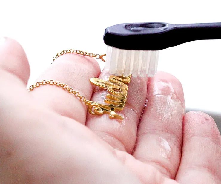 Soak your jewellery, one piece at a time, then dip a soft-bristled brush into the soapy water and gently scrub your jewellery. This will help clean each piece thoroughly.
